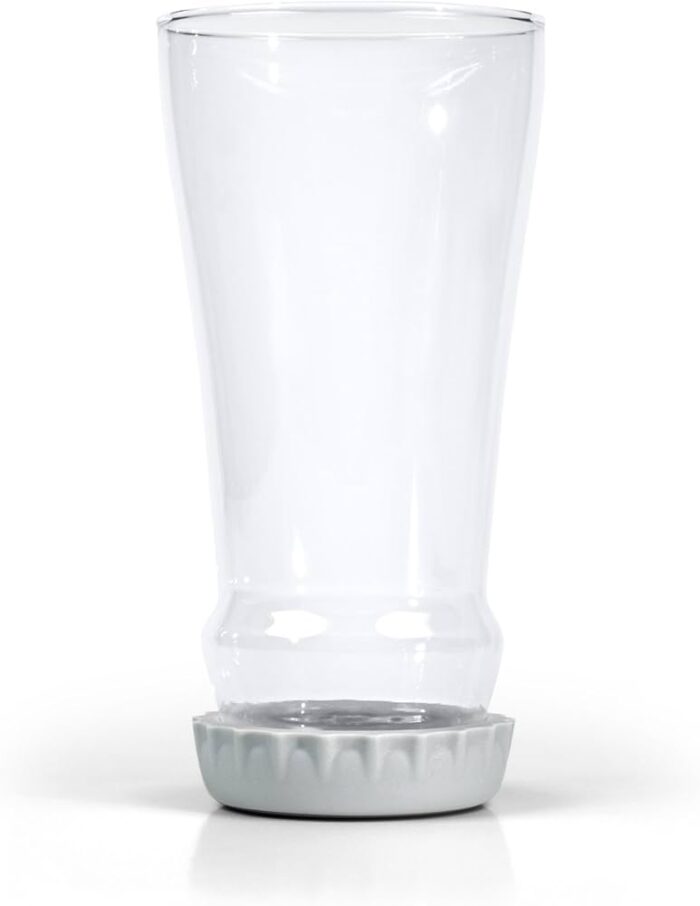 Cuenta con un posavasos de silicona en color gris, es extraible, y te ayudará a proteger el vaso reduciendo el impacto del vidrio al dejarlo sobre cualquier superficie.
